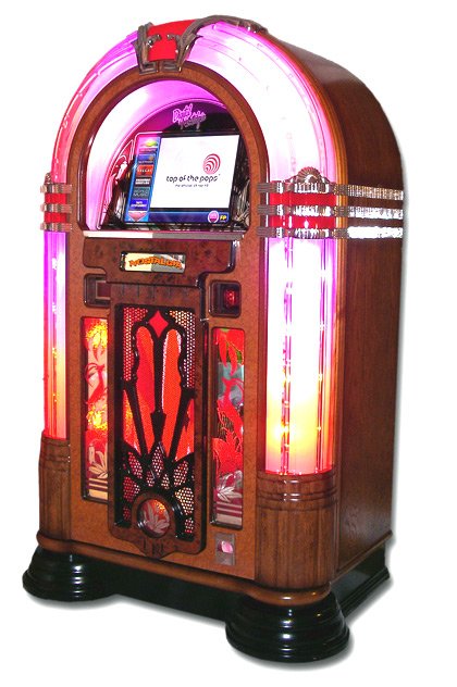 BGM Jukeboks som indeholder 7000 sange. Musikken er fra 50erne og frem til det nyeste nye! Jukeboksen opdateres hvert kvartal. Indeholder alt fra dinnermusik til tidens hits. Se musiklisten her Mere end 7000 numre - fra 50erne og frem til det nyeste nye fra tidens hitlister! Masser af dejlig musik - også dinnermusik. Se hvor nem jukeboksen er at bruge - uanset hvordan den ser ud, kan den det samme - og indeholder samme musik: Det er nemt at vælge musikken på skærmen ved at trykke på de store covers og vælge musiknumre - og automatisk DJ musikfunktion kan slås til, så at jukeboksen selv blandet god musik hvis at der ikke er nogle indtastninger. Kan tilsluttes eget anlæg eller professionelle højtalere kan lejes hos os. Du kan også leje et kabel, så du kan tilslutte din Ipod eller PC til jukeboksen. Indeholder nøjagtig samme musik og software som vores øvrige jukebokse. Bestil nedenstående ekstra højtalere og få ægte koncertlyd!! Kan normalt (hvis ledig) hentes fra torsdag og afleveres mandag (man betaler selvfølgelig kun for et døgns leje) - dog omkring st. bededag og i konfirmationsæsonen kan vi ikke yde denne service. Vi tilbyder at levere og afhente denne på Sjælland til en fast pris på kun kr. 750,-.Brun Nostalgia jukeboks udlejning