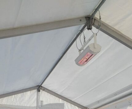 -2 aftræksslanger på 10 m der ligges i hver ende af teltet.